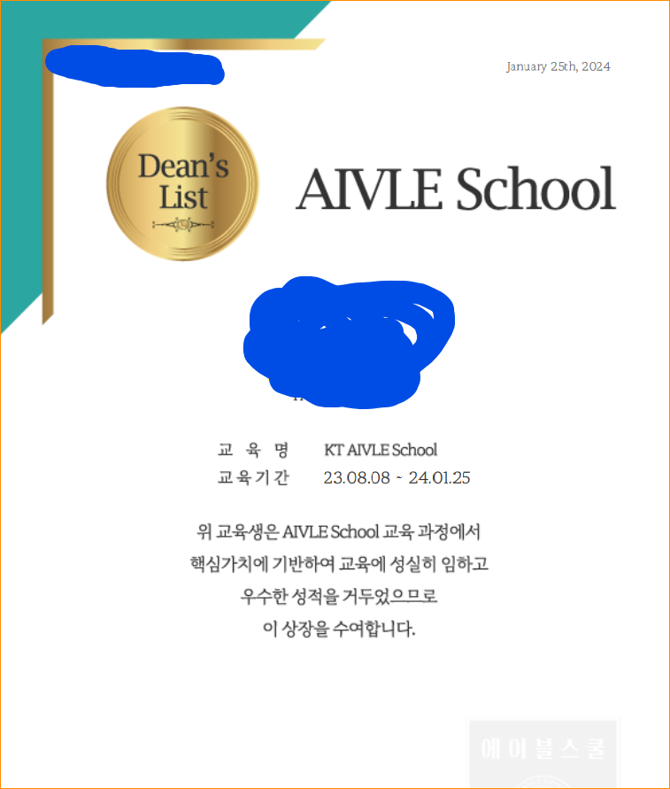 나는 정말로 KT AIVLE SCHOOL이 나에게 찾아온 행운이었다고 생각한다.