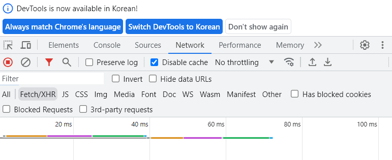 ctrl+L을 눌러 네트워크 로그를 초기화 하고